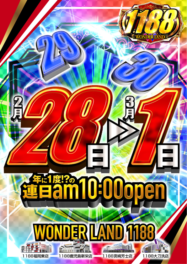 ワンダーランド1188宮崎芳士店のお知らせ一覧