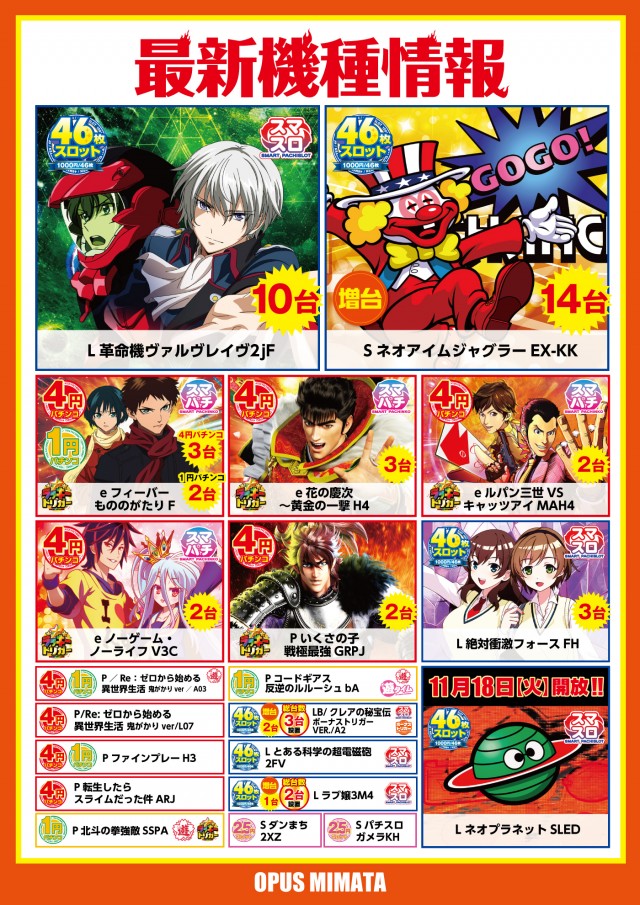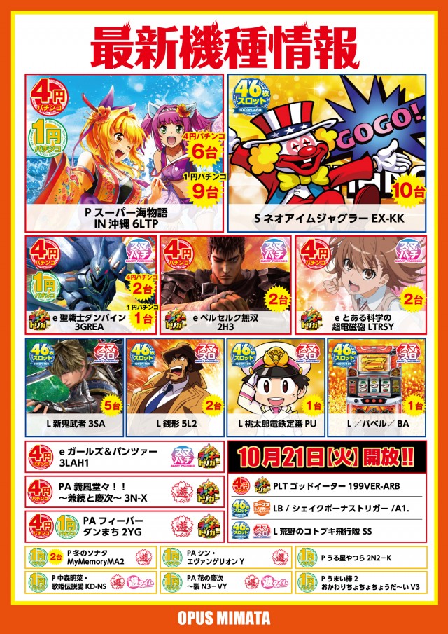 明日5日(水)🌟新台入替🌟朝10時00分OPEN💪