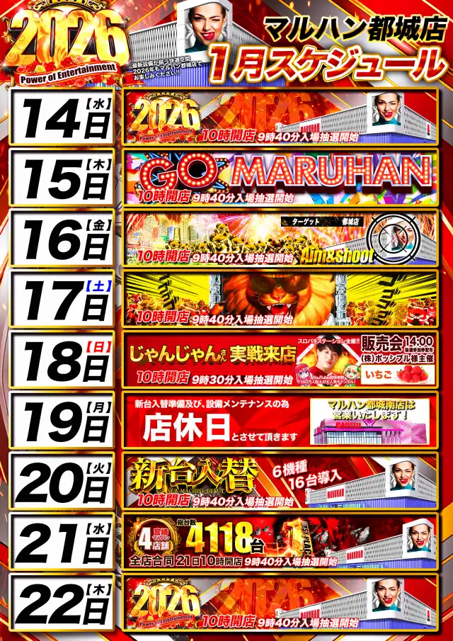 1月19日店休日→1月20日新台入替(予定)10時オープン!