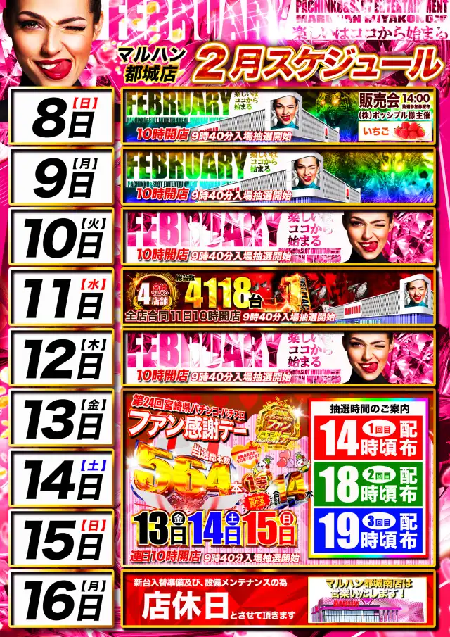 2月8日(日)最新機種導入済!朝10時開店!