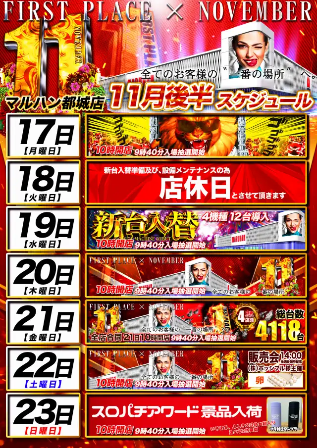 11月16日(日)本日10時オープン! ファン感謝デー開催