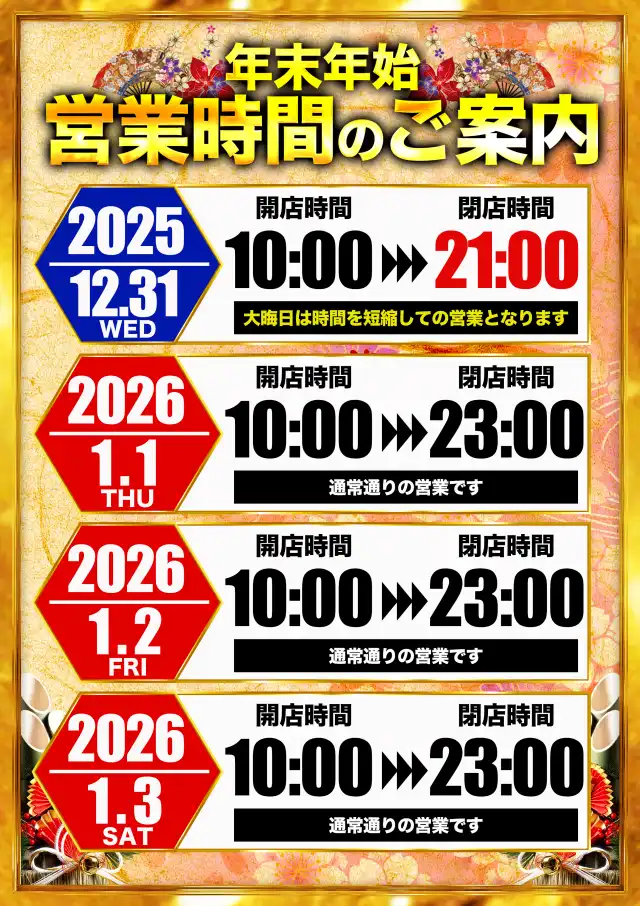 12月28日(日)真っ向勝負!総付景品配布!!