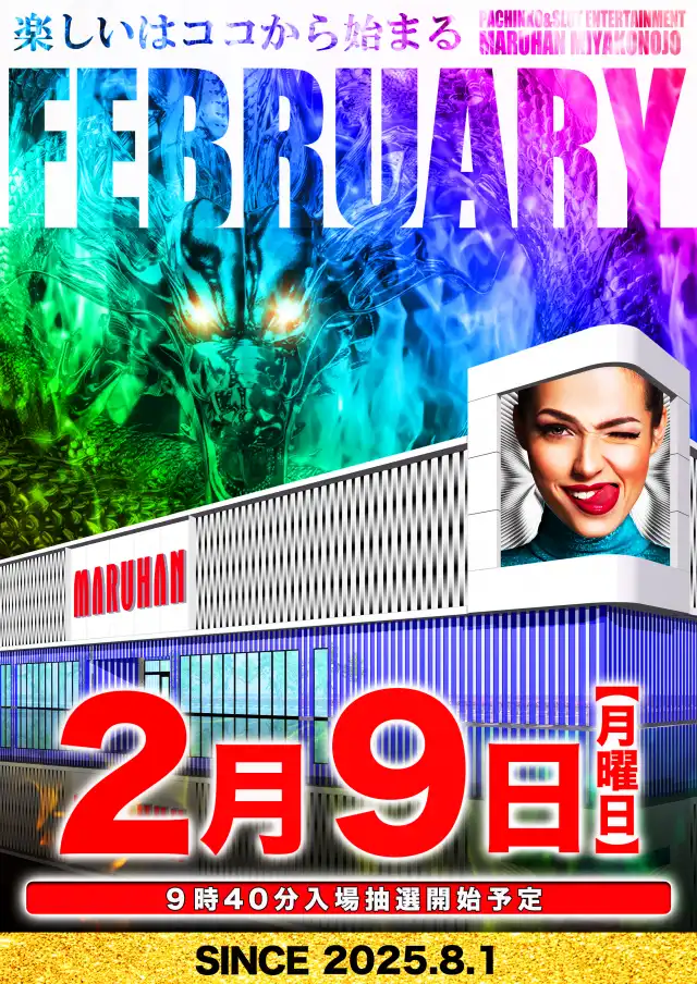 2月9日(月)最新機種導入済!朝10時開店!