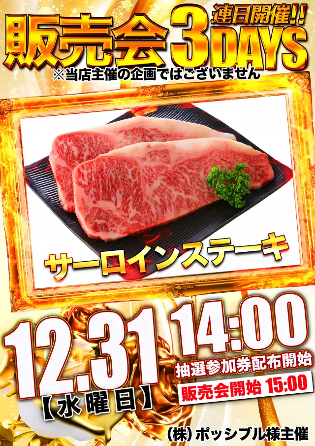 12月30日(火)ポッシブル様主催の販売会あり!!
