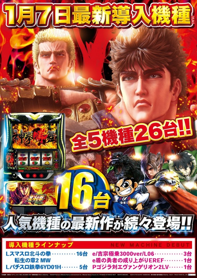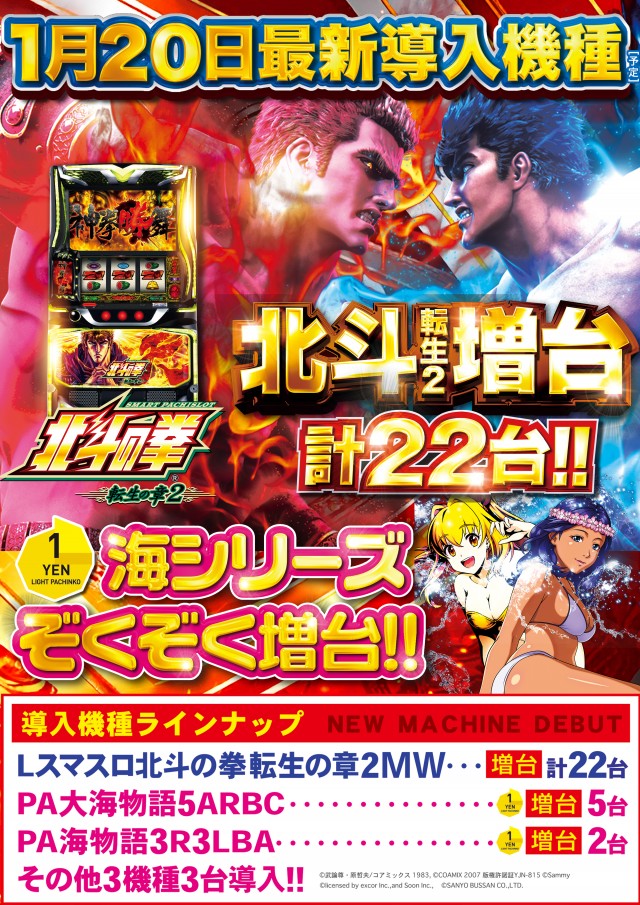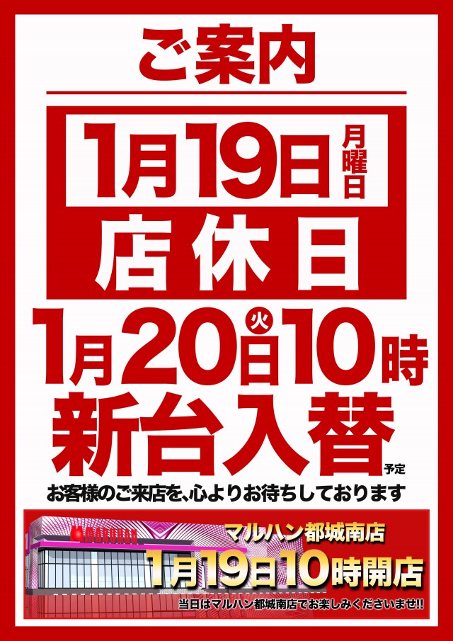 1月19日店休日→1月20日新台入替(予定)10時オープン!