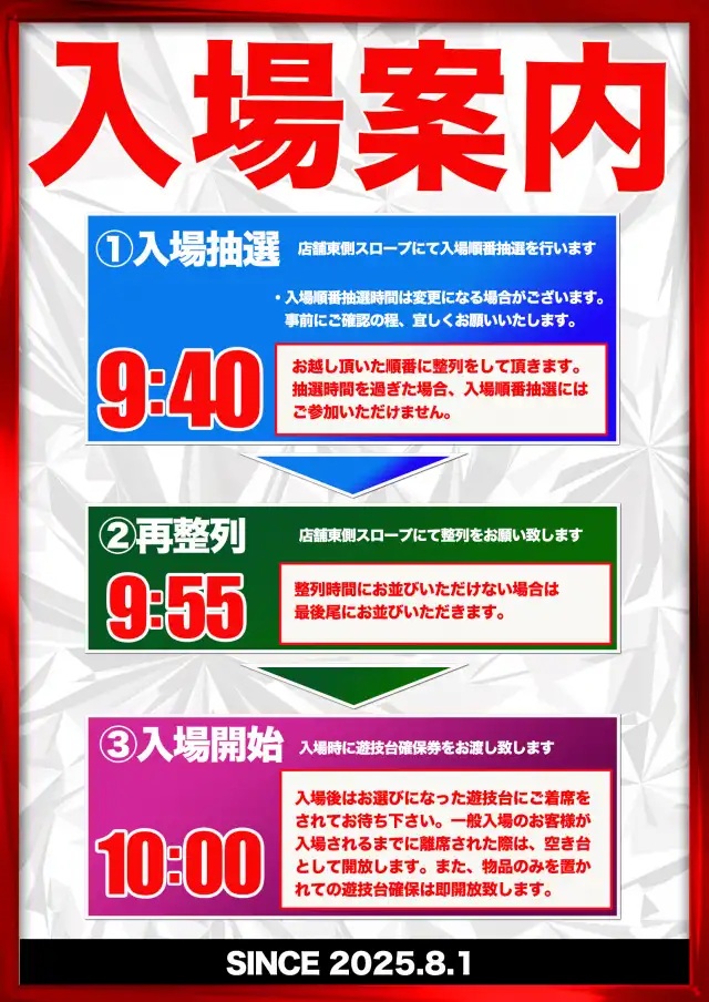 10時OPEN!!入場抽選は9時40分開始◇◆◇◆◇◆◇◇◆◇◇◆◇◇◆◇