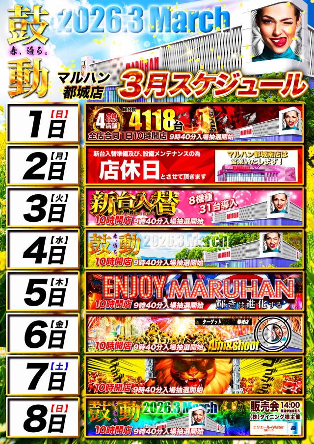 3月1日(日)宮崎マルハン4店舗全店合同10時開店!