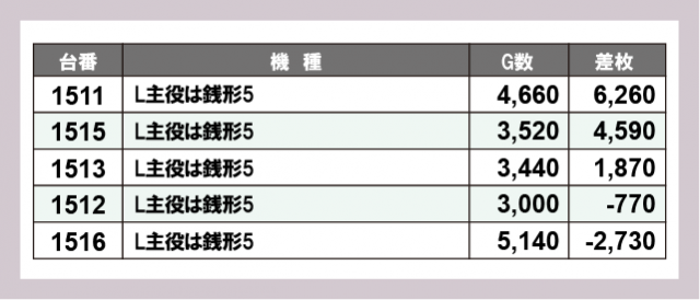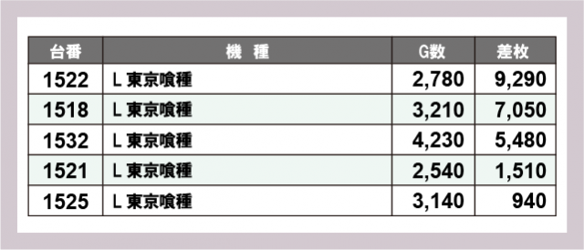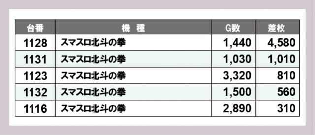 ※差枚数順に掲載しています