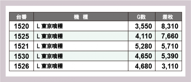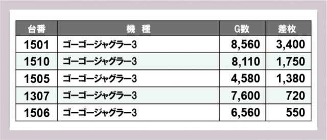 ※差枚数順に掲載しています