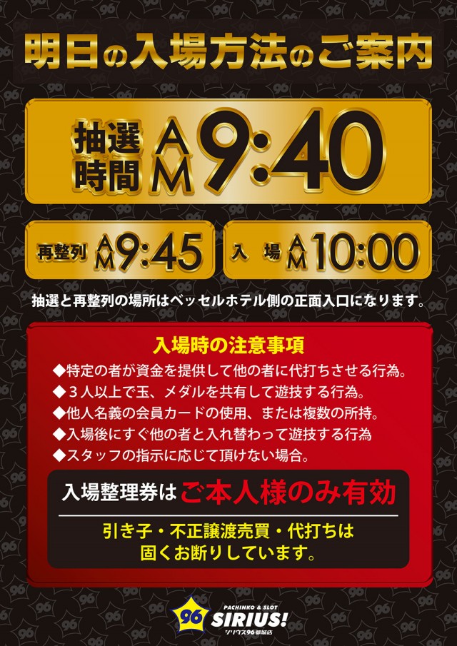 🌈😊シリウス96でお楽しみ下さい😊🌈✨朝10時オープン✨
