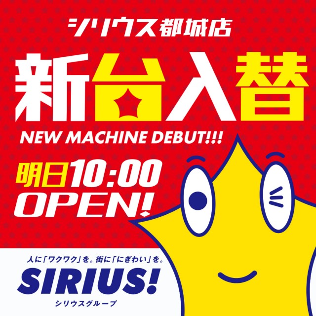 🔥🔥🔥本日新台入替🔥🔥🔥シリウス都城店 朝10時開店です😄🌈