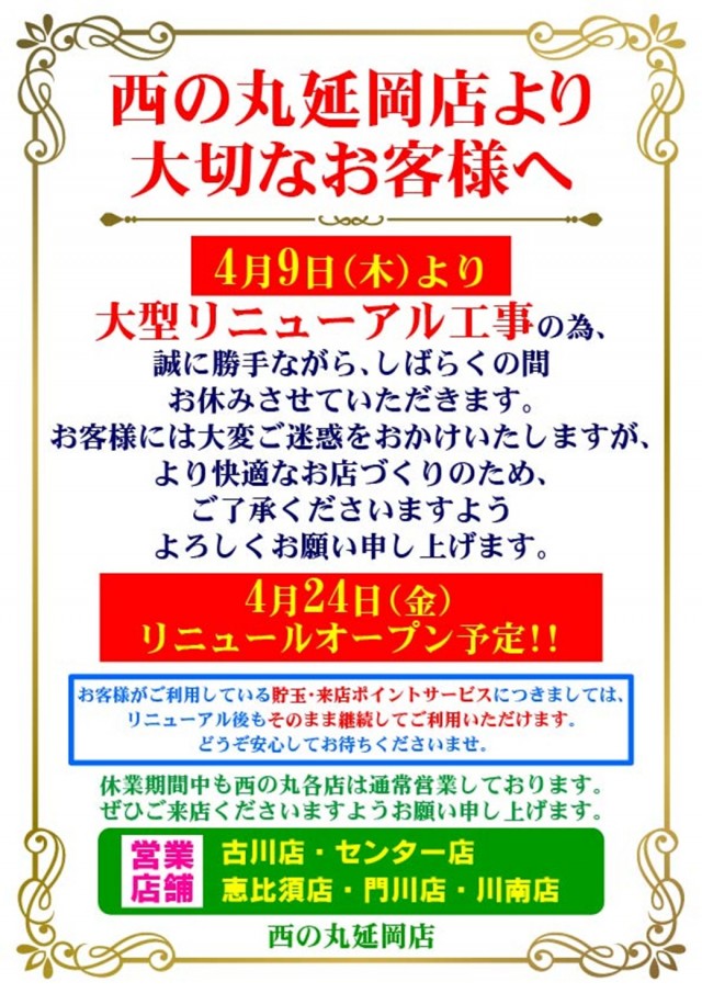 西の丸延岡店のお知らせ一覧
