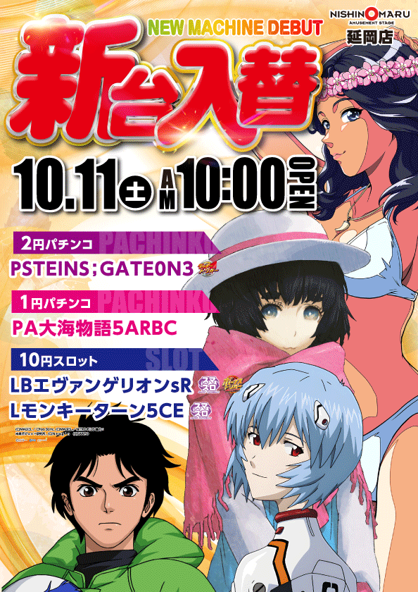 明日、新台入替❗❗10時OPEN🌟🌟🌟