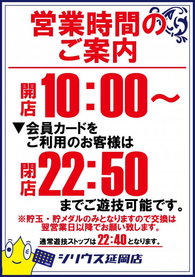 シリウス延岡店 明日10/9(木)新台入替!朝10時開店!