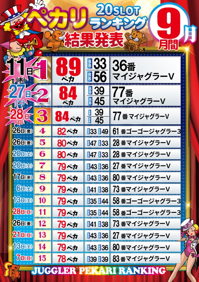 1位 10月7日(火) 2位 10月27日(月) 3位 10月4日(土)