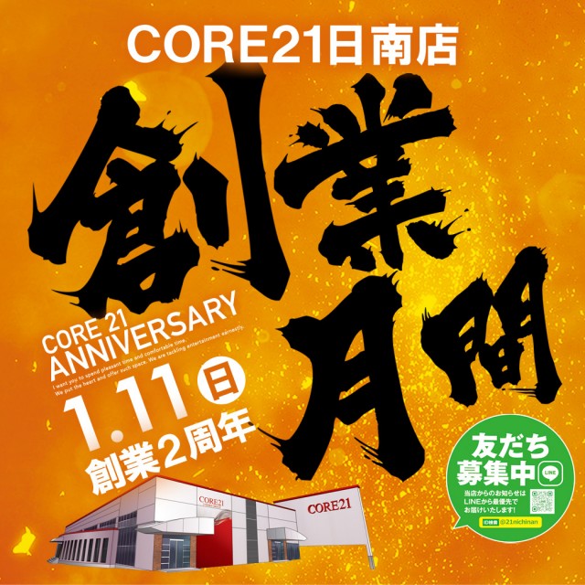 CORE21日南店!本日【2周年創業日】10時OPEN!