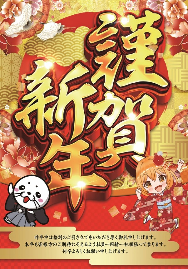 厚く御礼申し上げます。本年も皆様方のご期待にそえるよう社員一同精一杯頑張って参ります。本年も変わらぬご愛顧の程よろしくお願い申し上げます。本日1月1日元旦10時オープン -