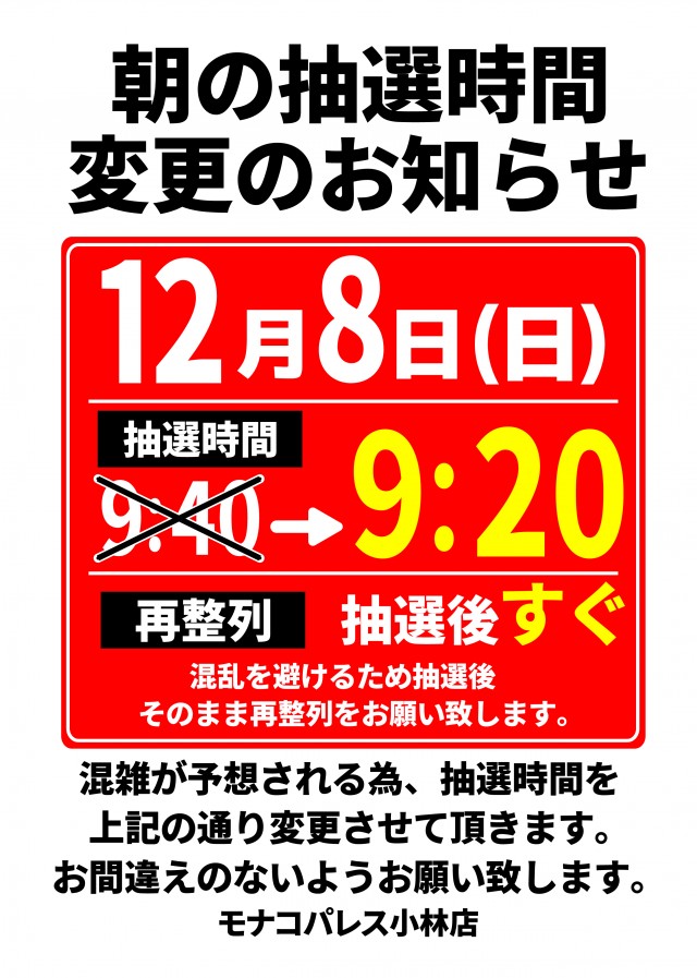 🌈明日創業日🌈【抽選時間変更】のご案内