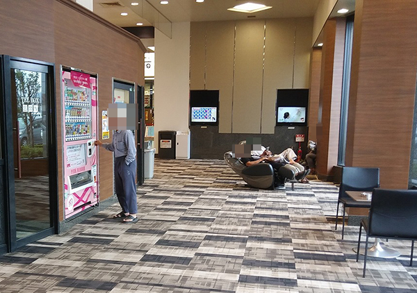 外からの光が差し込むレストスペースも清潔に維持されている。テレビや雑誌、マッサージチェアなどが設置されているため、しっかりと気分転換ができそうだ。