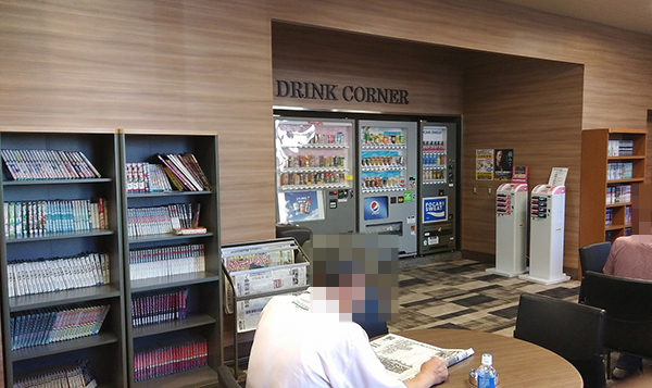 レストコーナーには、マンガ本や雑誌などが充実。ゆったりとくつろいでいる様子のプレイヤーも確認している。