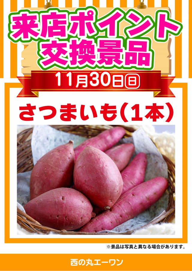 本日10時開店✨毎週日曜日はポイント交換会✨さつま芋をご用意