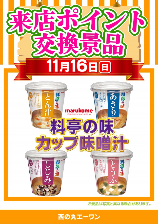✨ファン感開催✨毎週日曜日はポイント交換会『カップ味噌汁』