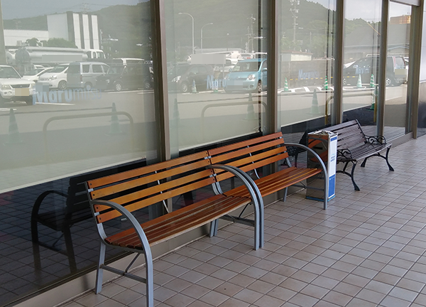 ホールの外にもベンチが置かれているなど、休憩設備にもこだわっている印象を受けた。