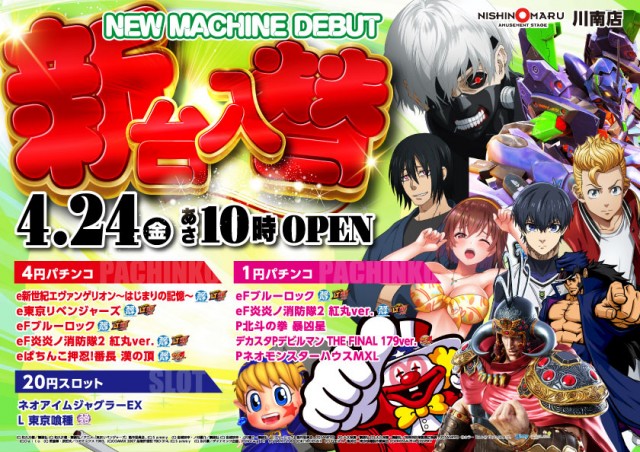 😊本日 新台入替10時オープン😊