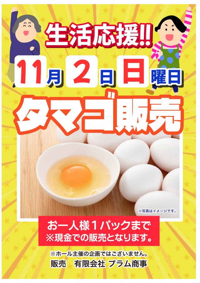 本日『3連休集中取材💕タマゴ販売💡』ご来店お待ちしてます🌟🌟