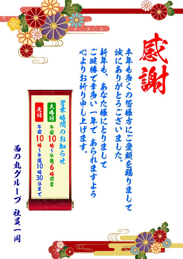 西の丸門川店のお知らせ一覧
