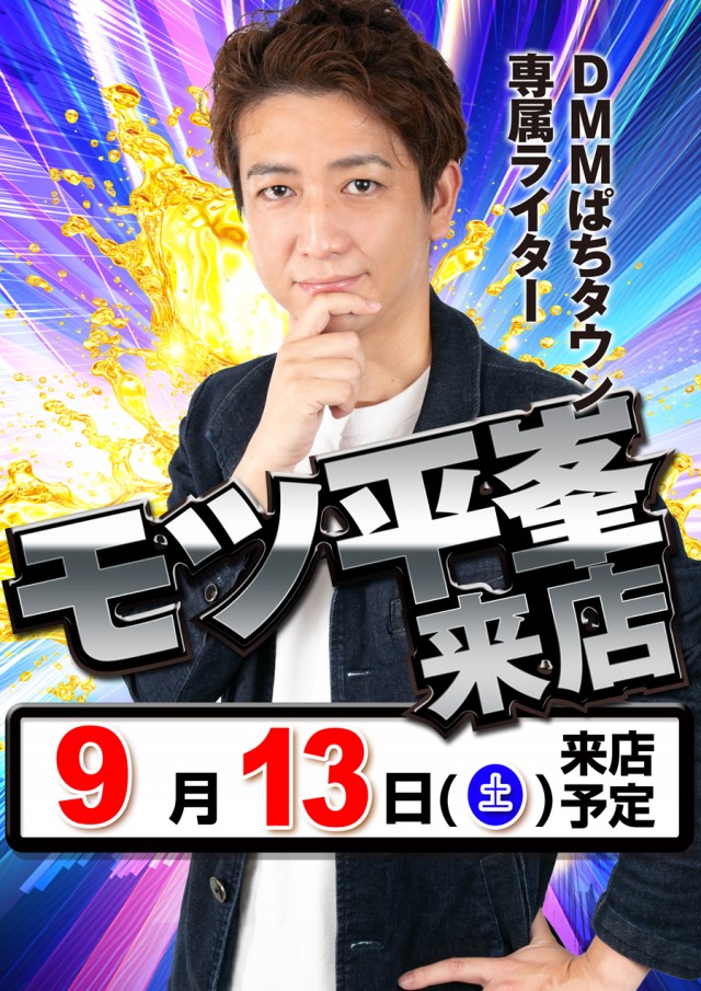 本日9月13日DMMライターモツ平峯さん来店(予定)