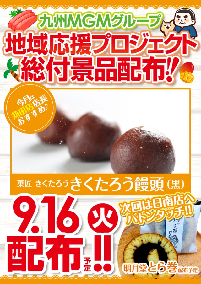本日9月16日きくたろう饅頭総付景品配布致します♪