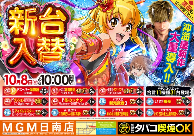 本日10月8日新台入替10時オープン(予定)