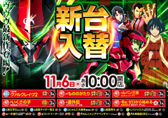 本日11月6日新台入替10時オープン(予定)