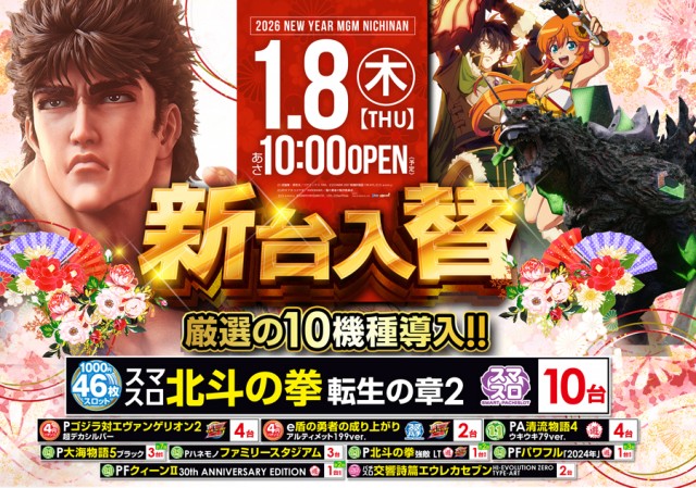 本日1月8日新台入替10時オープン(予定)