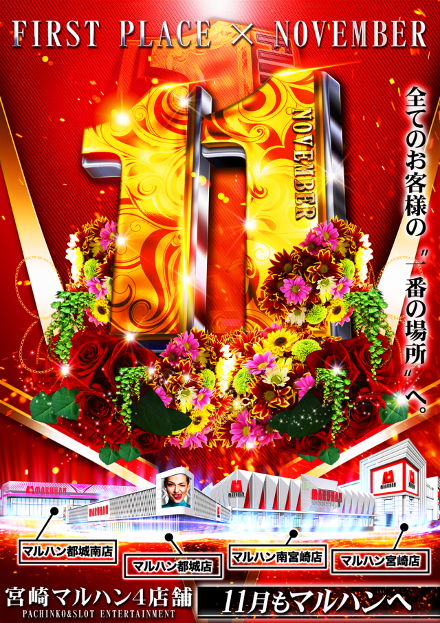 11月1日(土)宮崎マルハン4店舗合同全店10時オープン😍