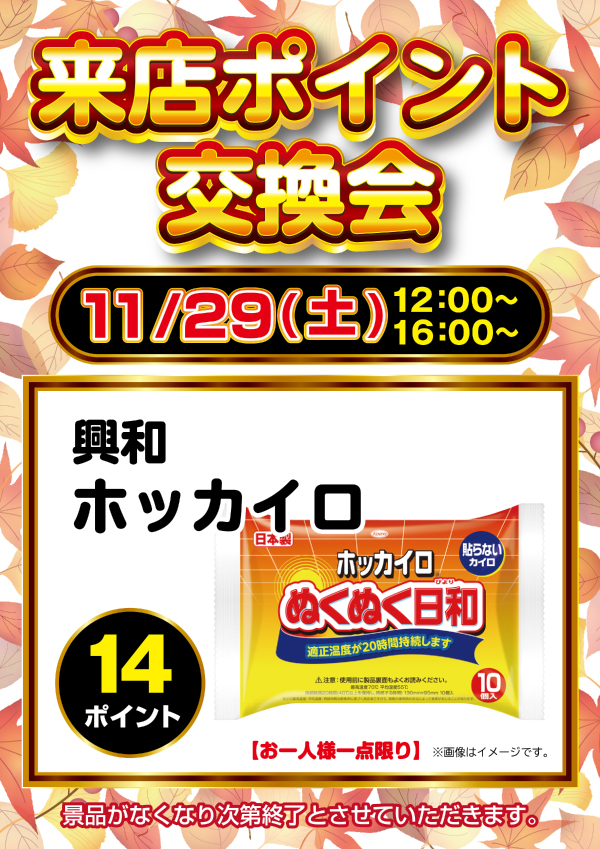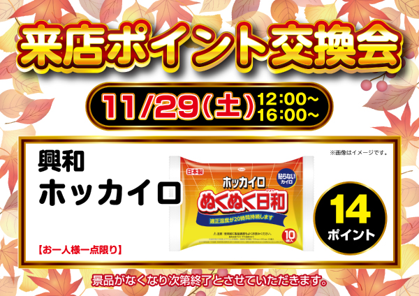 本日11月29日(土) 朝10時00分OPEN!(^^)!