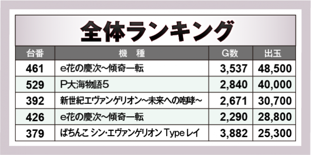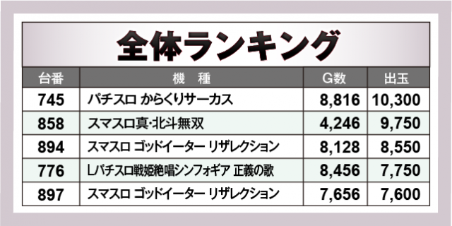 ※出玉数順に掲載しています