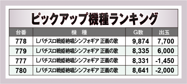 ※出玉数順に掲載しています