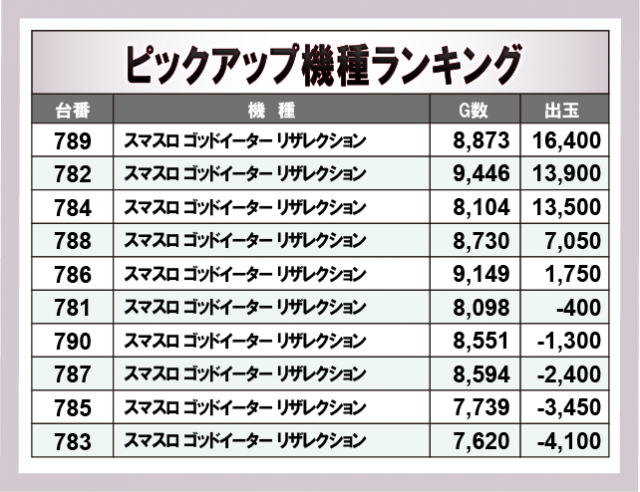 ※出玉数順に掲載しています