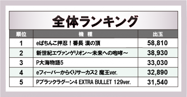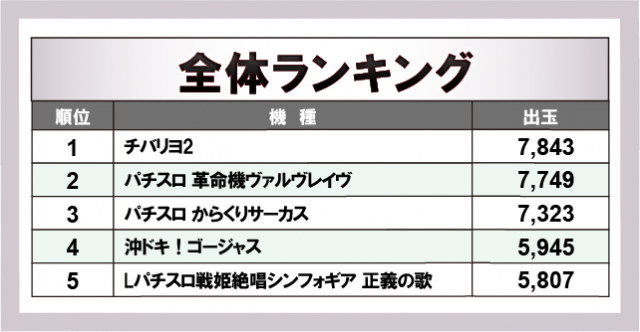 ※出玉数順に掲載しています