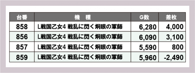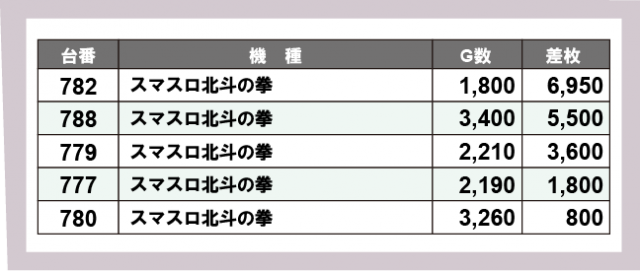 ※差枚数順に掲載しています