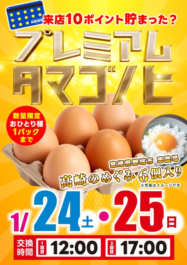 本日1/24(土)プレミアムタマゴ入荷🐣
