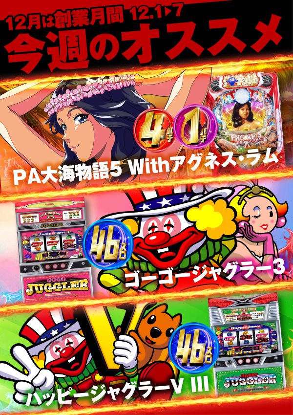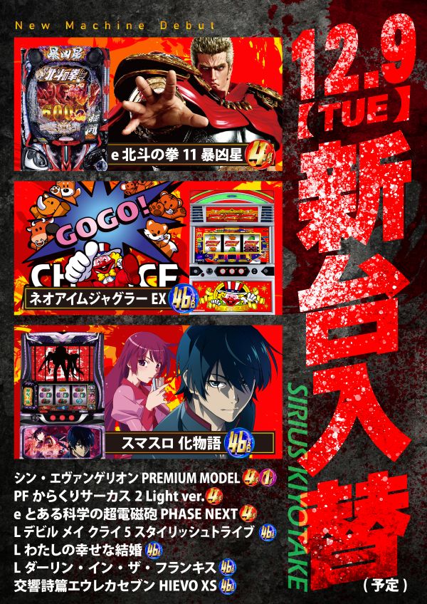 本日12/9(火)新台入替!🌈😁元気に朝10時OPEN!🌝