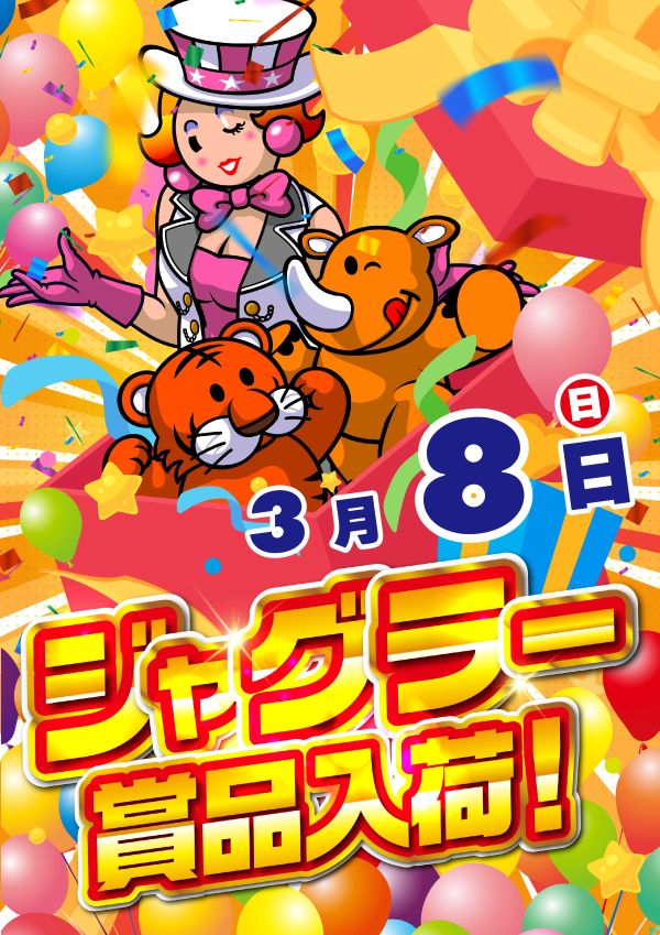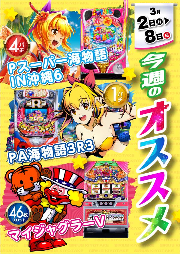本日3/3(火)新台入替!🌈😁元気に朝10時OPEN!🌝