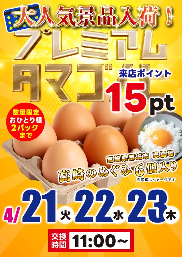 明日4/23(木)プレミアムタマゴ入荷🐣