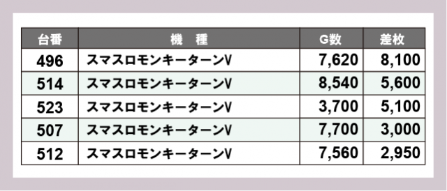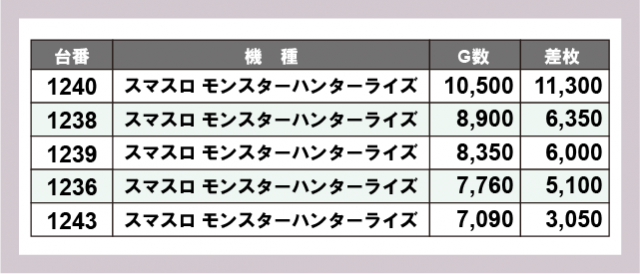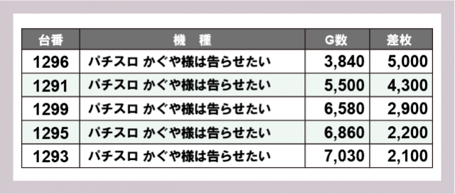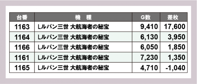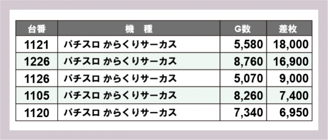 ※差枚数順に掲載しています