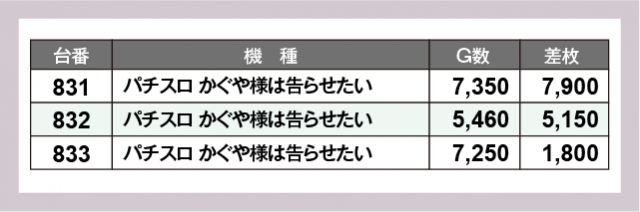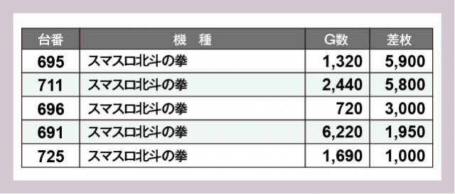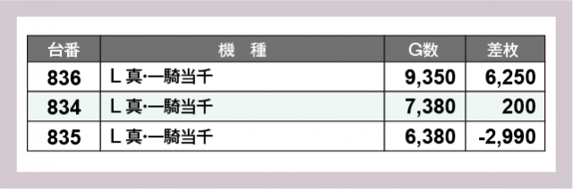 ※差枚数順に掲載しています