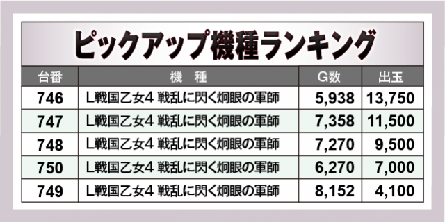 ※出玉数順に掲載しています