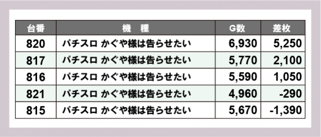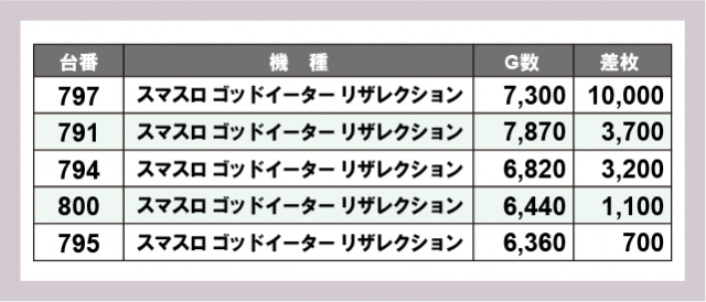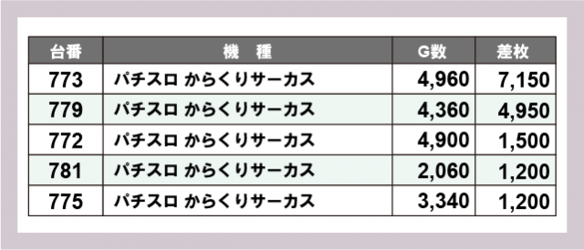 ※差枚数順に掲載しています